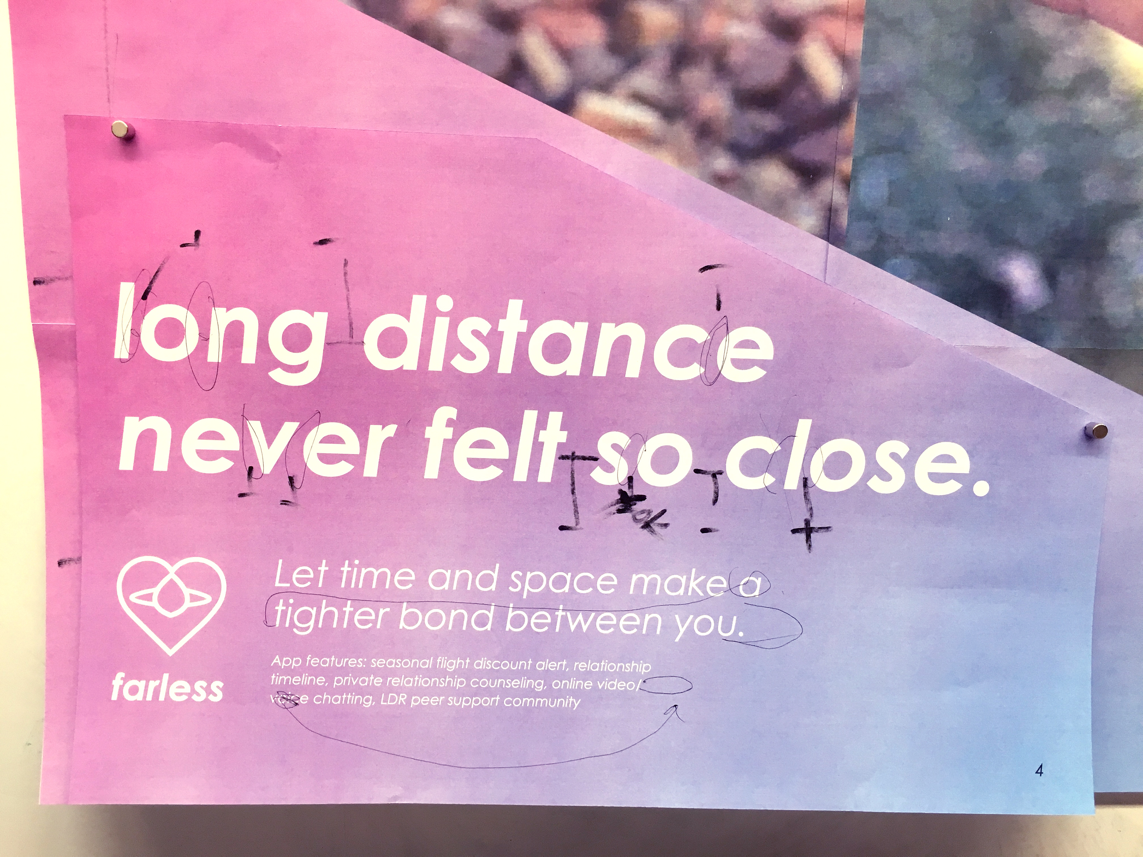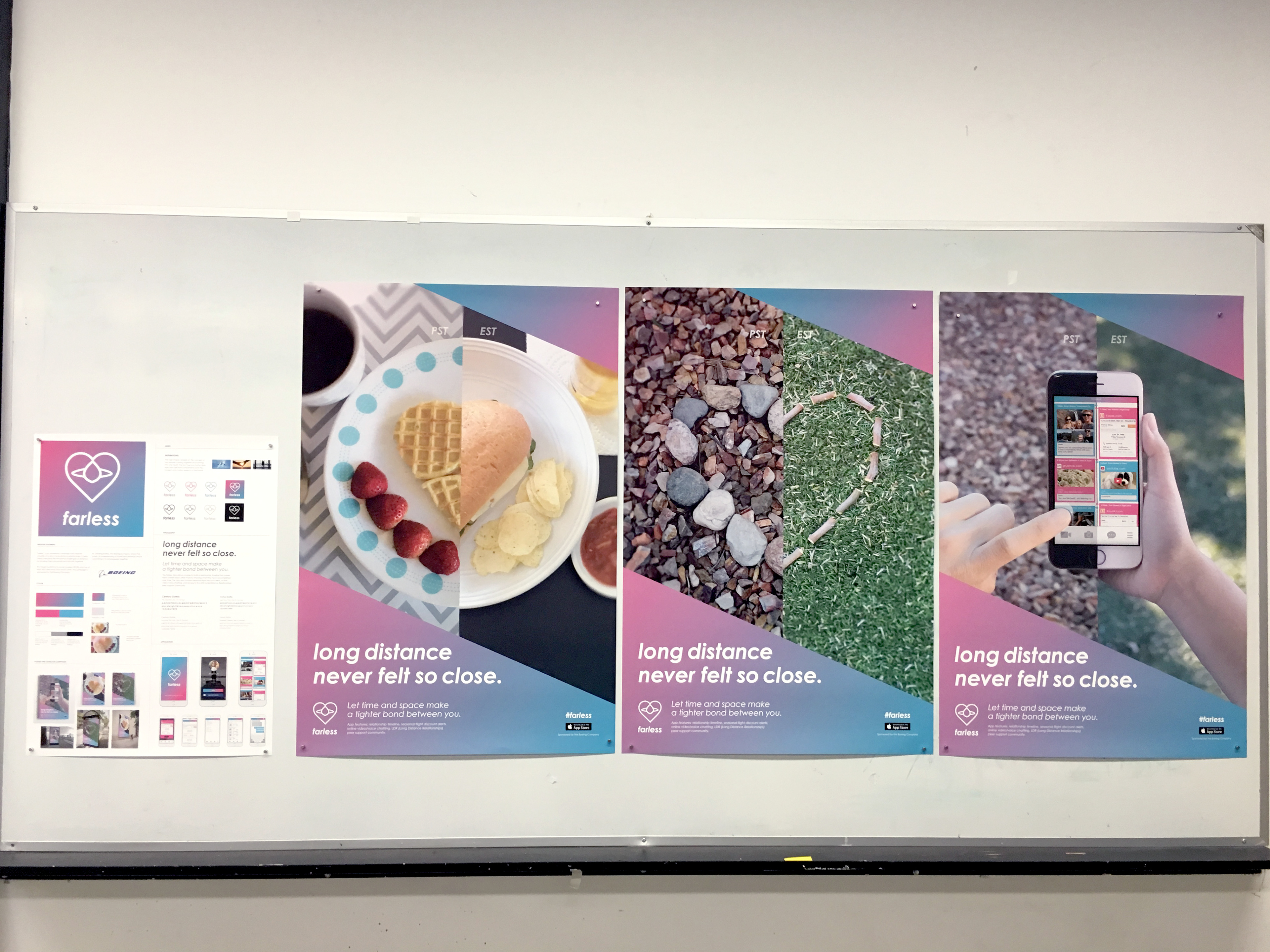 “Farless” is an awareness campaign that supports couples who are in long-distance relationships aka LDR. It helps them overcome their emotional challenges of distance by bringing them physically and virtually together. The mobile app, commercial, identity, and poster campaign were designed in Fall 2015.